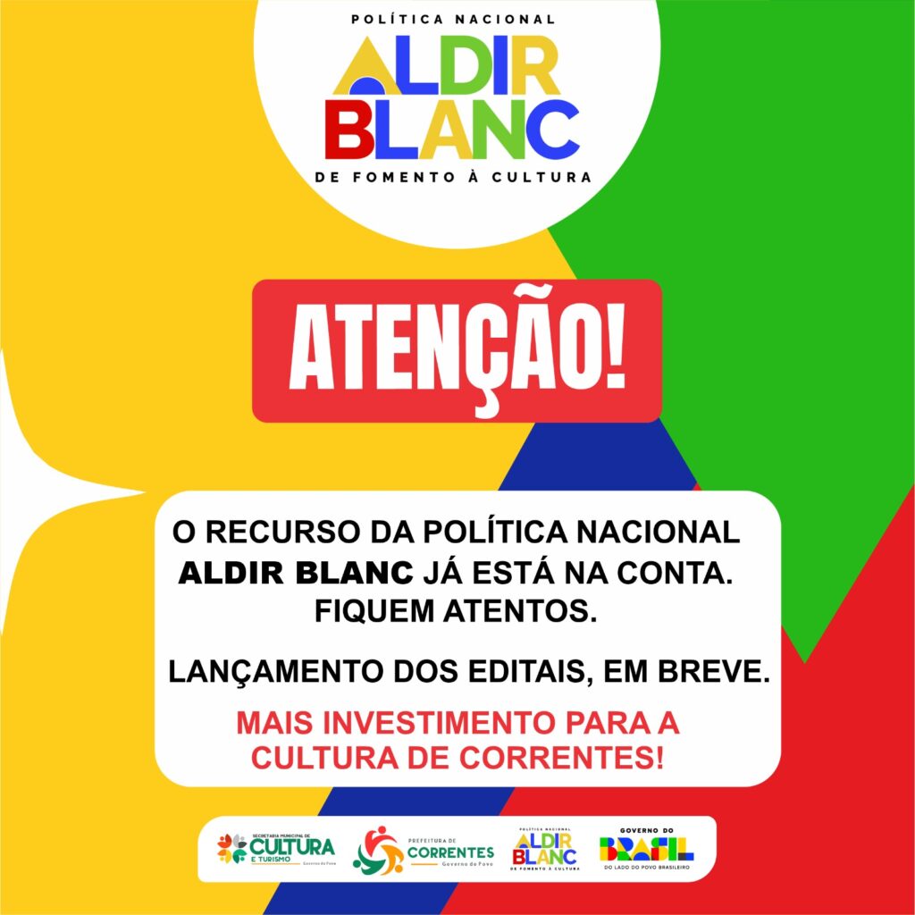 A Prefeitura de Correntes, por meio da Secretaria Municipal de Cultura, informa que os recursos da Política Nacional Aldir Blanc já foram devidamente creditados.